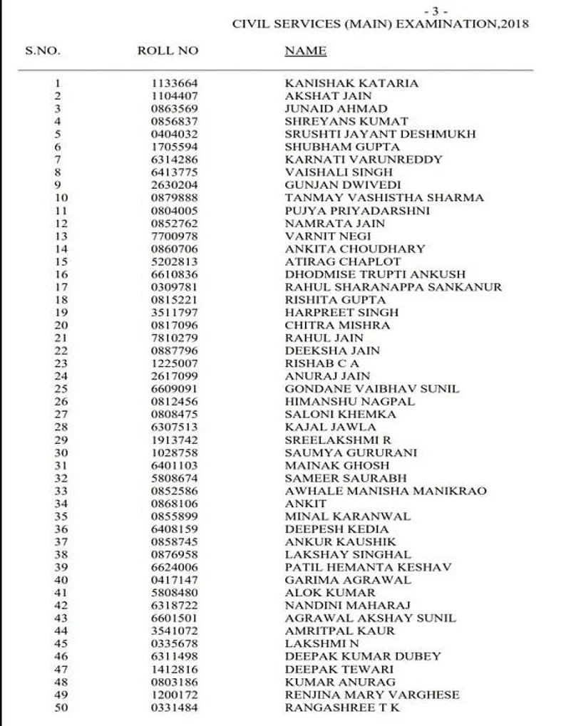 Union Public Service Commission has released the results of the written part of Civil Services Examination, 2018 on the official website upsc.gov.in. Kanishak Kataria has topped the exam, while Akshit Jain and Junaid Ahmad have held the second and third positions, respectively.