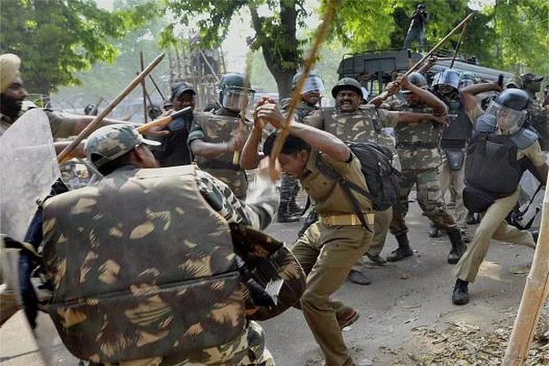 Police resorted to lathicharge and used water canons to control the protesters, they said.