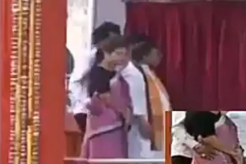In the viral clip, the authenticity of which cannot be confirmed by Outlook, Manoj Kanti Deb of the BJP can be seen inappropriately touching the state's social welfare and social education minister Santana Chakma in an “indecent manner”.