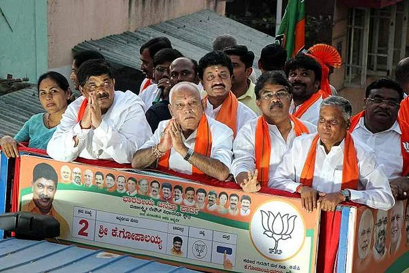 The BJP needs to win at least six of the 15 seats to remain in majority in the 225-member assembly (including the Speaker, who has a casting vote), which would still have two vacant seats -- Maski and R R Nagar.