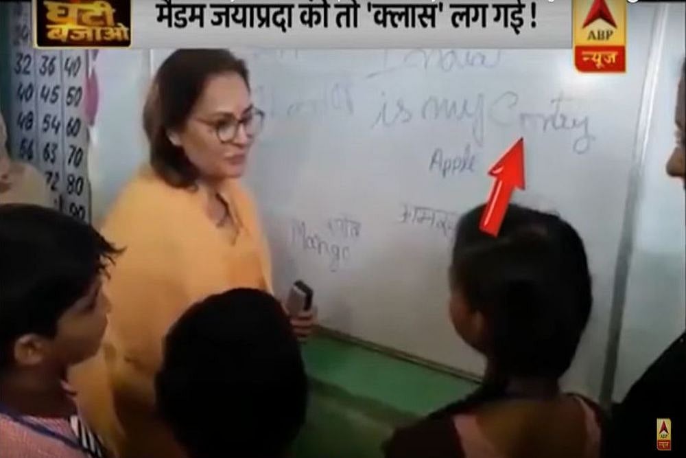 No, we haven't misspelt "country". A video shared by Hindi news channel, ABP, which is now going viral, shows Jaya writing the word "country" like this.