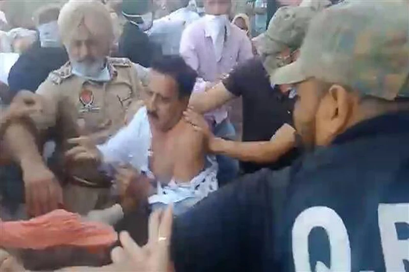 Some police personnel took the MLA and local leaders to a shop. But later when they came out, the protesters allegedly thrashed Narang and tore his clothes, police said.