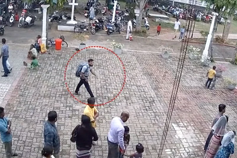 CCTV footage aired by a Sri Lankan TV channel shows two of the alleged suicide bombers carrying rucksacks entering the places where they unleashed carnage -- at the St Sebastian Church in Negombo and the Shangri-La Hotel in Colombo, on Easter Sunday.