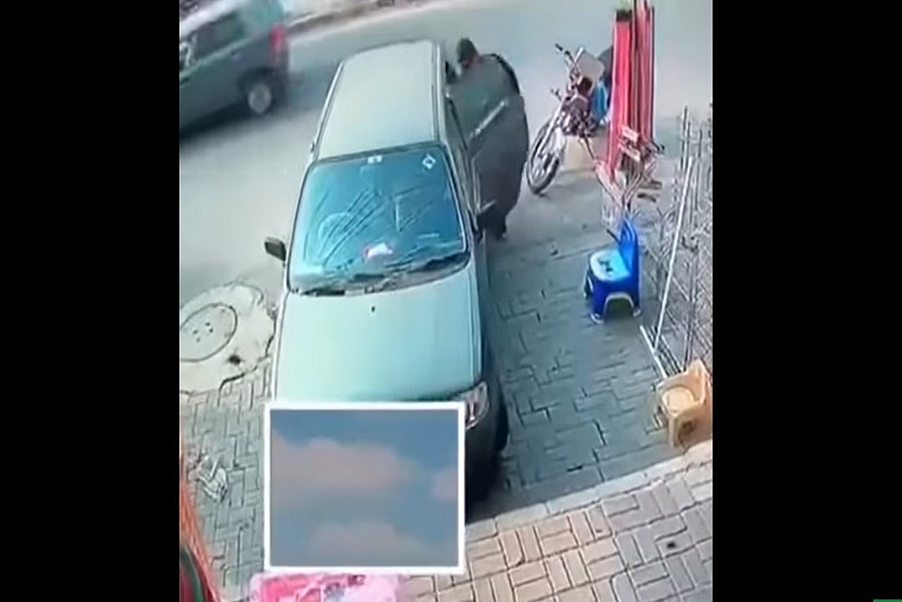 The CCTV footage, originally from December, shows a driver parking his car by the road and stepping out of the vehicle. As the driver moves to lock the car, a young man clad in black jacket swiftly walks past and opens the rear door slightly and shuts it immediately. He then moves out of the frame without raising any eyes.