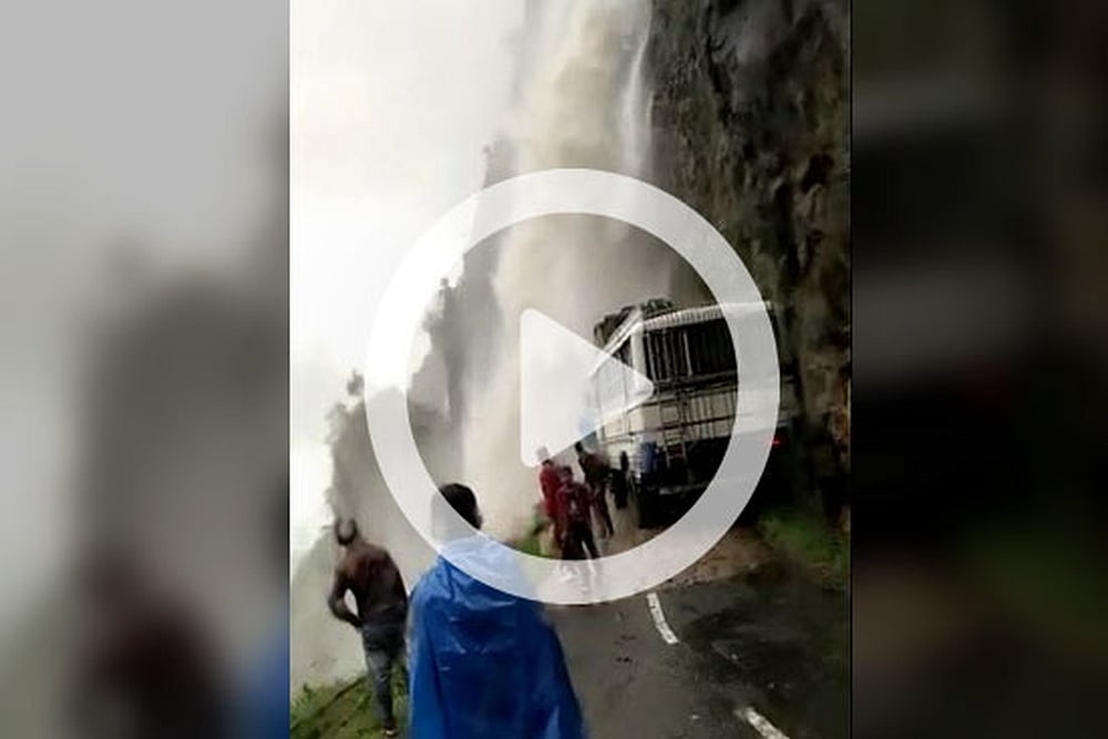 With the Cyclone Fani impact the rainfall has increased creating this type of temporary waterfalls in the hills. Eye-witnesses say, water continued to flow for several hours, halting the movement.