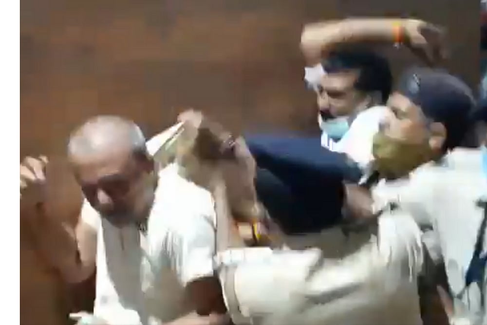 Disturbing images of some legislators being pulled by the hair and kicked and male police personnel dragging a female MLA have also gone viral on the social media.
