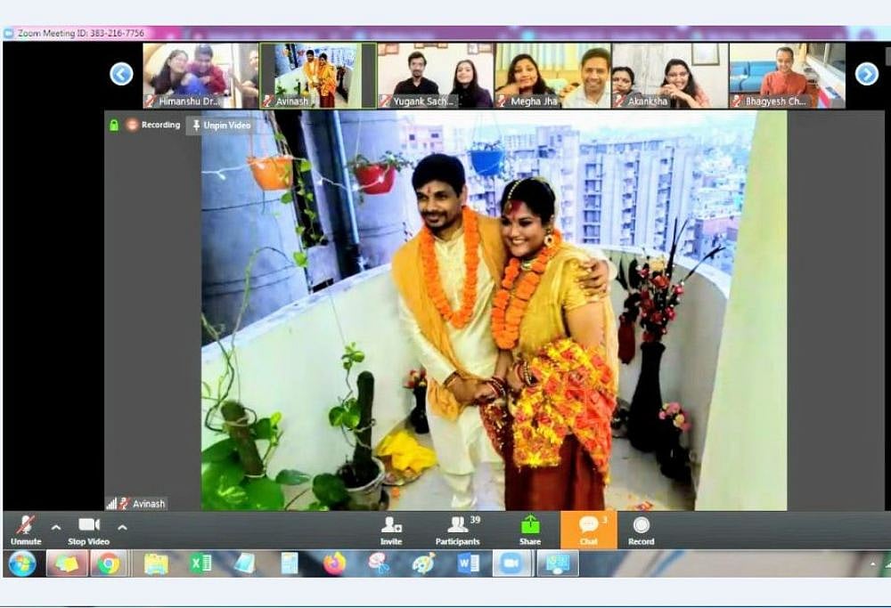 One such couple is Avinash Singh Bagri from Satna and Kirti Agrawal from Bareilly. From Gauri Poojan to Make Up consultancy, Sangeet to Phere, all wedding ceremonies happened on a Zoom call.
