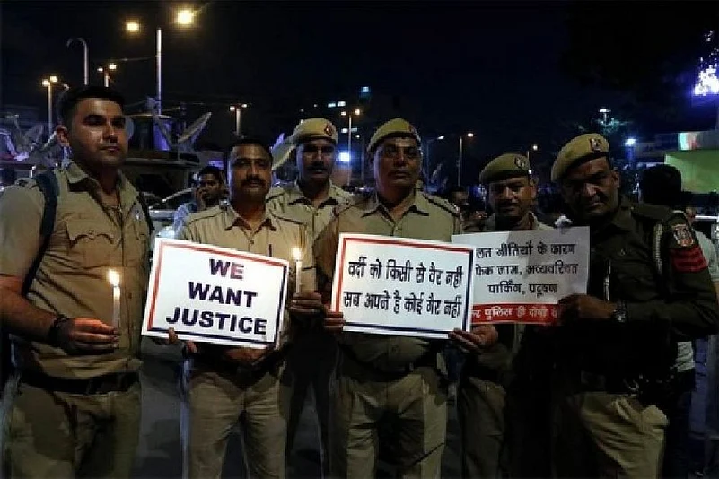 In one of the many videos that surfaced following the incident, lawyers are seen purportedly harassing the woman officer, who is flanked by other police personnel and trying to control a group of lawyers.