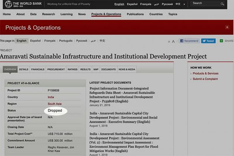 The World Bank’s website says that the “Amaravati Sustainable Infrastructure and Institutional Development Project” has been dropped.