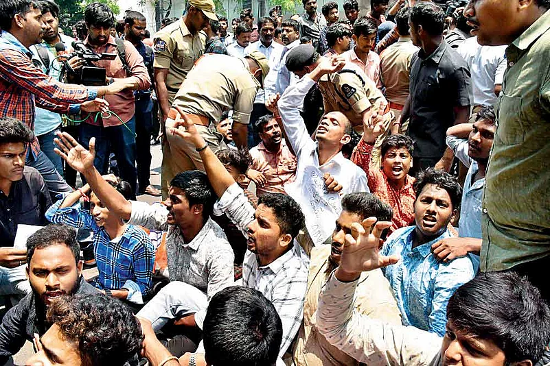 A total of 9.74 lakh students wrote the Intermediate examinations held in February-March, out of which an astounding 3.28 lakh failed to secure pass marks. The marksheets of many verged on the bizarre—abnormally low marks scarcely possible to fetch. A girl from Mancherial district got ‘00’ in Telugu, instead of the 99 she actually scored. Till now, 25 students have taken their own lives.