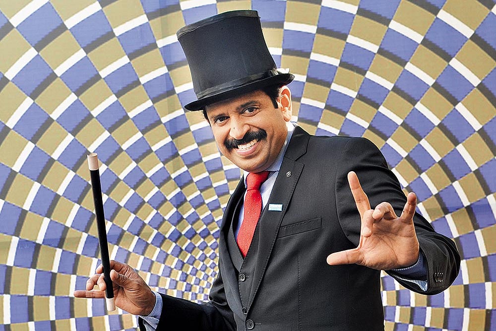 With the top hat, ’tache and three-piece, Gopinath Muthukad almost looks straight out of a Lee Falk comic panel. Almost. “Sorry, I didn’t bring my cape,” Kerala’s most famous contemporary magician says. The late-noon throng of school kids doesn’t care. As the meme goes, not all heroes wear one. And, anyway, Muthukad is more David Copperfield than Mandrake. Like the illusionist icon, he operates in the gulf between science and superstition. His currency: vismayam. Wonder.