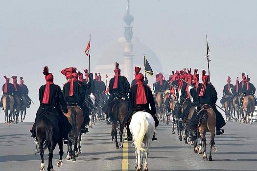 Before the beginning of the ceremony marking the date when India's Constitution came into force in 1950, the prime minister, wearing a saffron, red and green 'safa', paid homage to the martyrs by laying a wreath at Amar Jawan Jyoti at the India Gate.