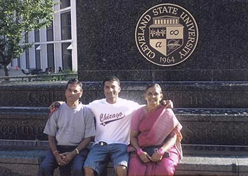 Sriniwas with his parents while they were visiting him in '02. Their doctor son had plans to set up a hospital at home.