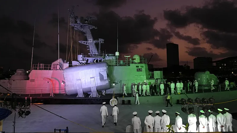 The decommissioning event was conducted at Mumbai's Naval Dockyard in a traditional ceremony wherein the national flag, the naval ensign and the decommissioning pennant of the two ships were lowered for the last time at sunset.