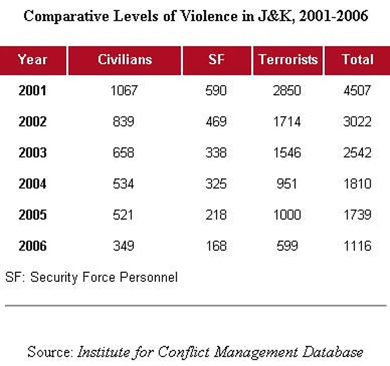 A scrutiny of the trajectory of violence in J&K helps understand why General Musharraf is insisting on troop withdrawal specifically from these locations, and indicates that the rationale goes beyond concern for the 'impetus for peace' or for the welfare of the people of Kashmir. Further, it goes well beyond the fact that Kupwara and Baramulla aredistricts close to the LoC. Baramulla and Kupwara have traditionally served as a gateway to terrorism in the Kashmir Valley, and have, for long, been crucial to the jihad in Kashmir.