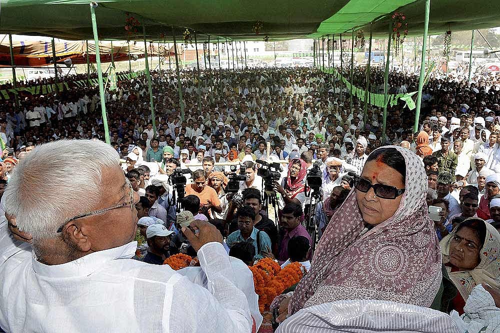 The Yadavs are upset with Nitish Kumar who, they complain, promoted upper-caste Bhumihars at their cost. So they are again rallying around their messiah Laloo, putting paid to BJP’s hopes that OBC votes would be split between the two. Rabri Devi stokes the fire. “Bachchon ke haath mein Nitish ne slate ke badle plate pakda diya hai (Schoolchildren have been handed doles instead of education),” she says, not elaborating whether she is referring to midday meals or to something else. Her audience pliantly nod their heads.