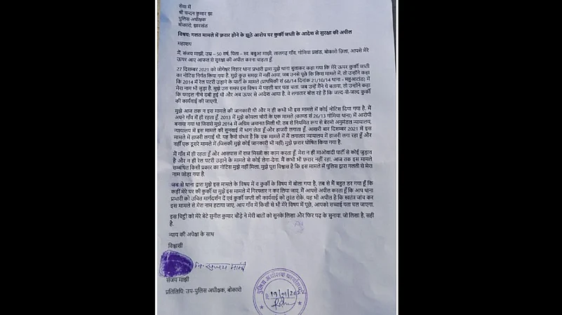 Further, the letter bearing his thumb impression explained, “I live in my village and work as a mason in the surrounding areas. Neither I am linked to any Maoist organisation nor related to the incident in which the railway track was blown up. Nor I have been an absconder in my life. I have never received any kind of notice in this regard.”
