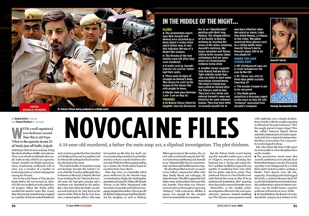 Novocaine Files: In the early hours of May 16 in 2008, just hours before she was to turn 14, Aarushi Talwar’s life was snuffed out in the most brutal manner. A day later, the body of Talwar’s servant Hemraj Banjade, who initially was the prime suspect, was found on the terrace of Talwar’s flat. The Aarushi-Hemraj case went through many twists and turns and Outlook chased the story