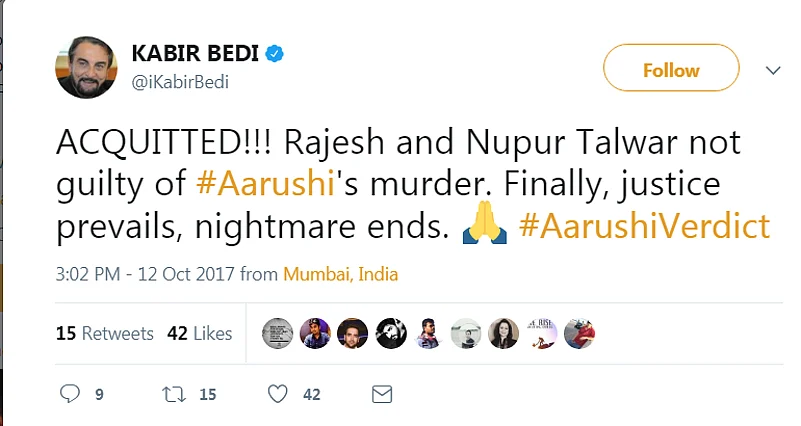Soon, after the verdict, the Talwars broke down. From actors to politicians, people on Twitter hailed the court decision.