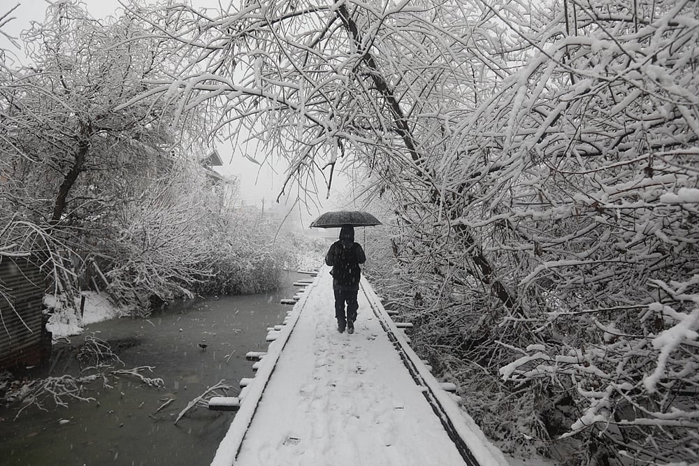 Contrary to the prediction of the Meteorological (MeT) Department, residents in Srinagar and other parts of the valley woke up on Sunday morning to a beautiful view of snow spread all around. Snowfall began late on Saturday night in most parts of Jammu and Kashmir. “As of now snowfall is likely to decrease gradually and there will be a temporary break till evening,” the MeT says.