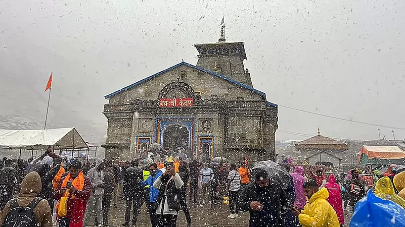 Due to snowfall over the past few days, Kedarnath and surrounding areas are covered with fresh snow and swept by cold winds.