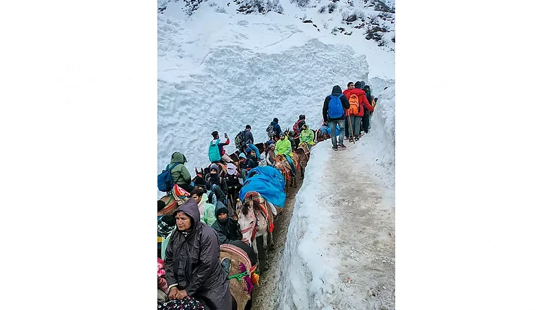 DGP Ashok Kumar visited Kedarnath to take stock of the situation and appealed to pilgrims, especially those with heart ailments, to take necessary precautions. Citing that oxygen pressure at such heights of over 11,000 feet can decrease amid the continuous snowfall, Kumar advised all pilgrims to remain careful.