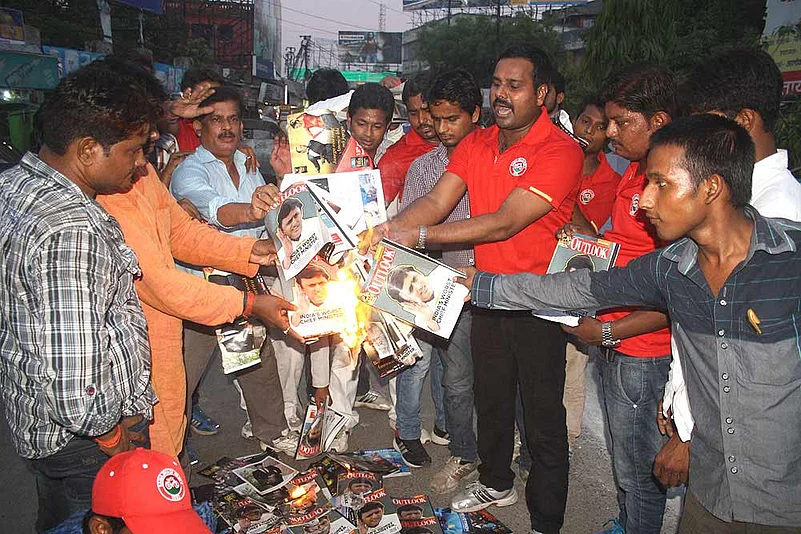 In the Lok Sabha polls, the party was drubbed. And the law and order crisis in the state—the latest being a gangrape and hanging of another woman in Bahraich, a shocking mirror of last fortnight’s incident in Badaun—has drawn huge criticism of Akhilesh’s government and his party. But the response to such criticism, in the media and otherwise, has been a streak of intolerance. Copies of Outlook with a cover story describing him as ‘India’s worst chief minister’ were systematically seized as soon as they reached Lucknow and the party’s henchmen set them ablaze right in front of the state assembly. A bookseller known for his proximity to the CM is believed to have purchased all copies from the chief news agent for Lucknow. Party goons made a bonfire of them. Thanks to another news agency, which had ordered some copies, some readers managed to get the issue. After the incident, the demand for copies of Outlook went up. A news agent said, “Some 2,000 extra copies were sold as even clerks and peons at the secretariat were curious to know what had been written about ‘India’s worst CM’.”