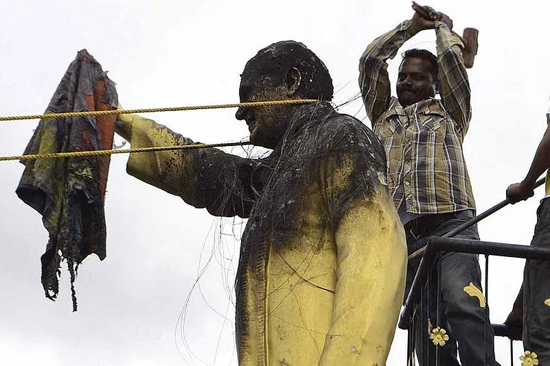 A fact-check by Outlook showed that the picture used to project the left's 'hypocrisy' is not from Tripura, and the men vandalising the statue of Rajiv Gandhi, are not from the CPI(M), as claimed by some on Twitter.