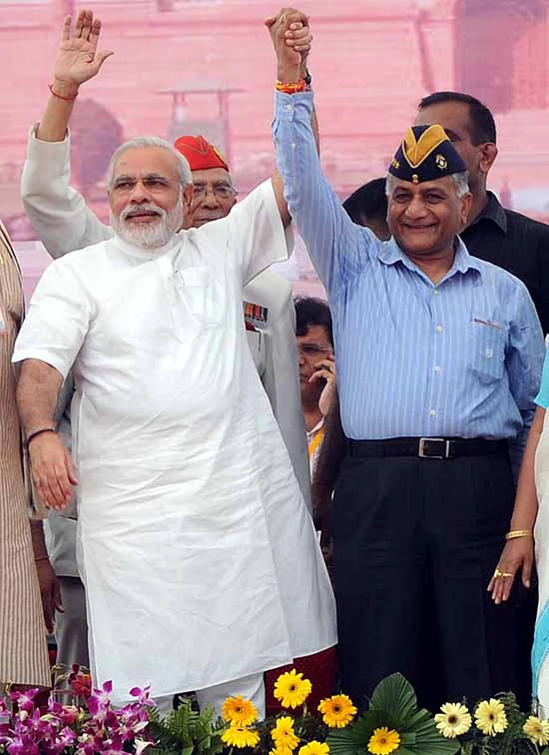 In April last year, while in service, Gen Singh had to combat questions over why, on the day his petition on his date of birth was coming up in the Supreme Court, two units of the army had moved from Hissar to Delhi without notifying the government. Last week, five days after he had shared the stage and held up his hands with the BJP’s prime ministerial candidate Narendra Modi at a rally of ex-servicemen, Gen Singh had to answer questions on what the Technical Support Division (TSD), a covert operations initiative set up under his watch, was really up to in Jammu and Kashmir.