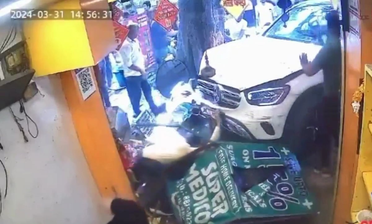 A Mercedes-Benz SUV collided with a 'kachori' shop in north Delhi's Civil Lines on Sunday afternoon injuring six people, including shop workers.