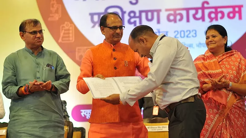 Chief Minister Shri Chouhan and other guests inaugurated the training programme for newly appointed teachers. The programme began with the Madhya Pradesh anthem. CM Shri Chouhan handed over appointment congratulatory letters to some teachers posted in various districts as a token. These teachers include Sushri Shefali Gurjar district Sehore, Shri Shubham Gupta district Narmadapuram, Shri Hukum Chand Rathore district Rajgarh, Shri Rajesh Ghote district Betul, Sushri Mamta Goyal district Dewas and Shri Anand Meena district Dewas.