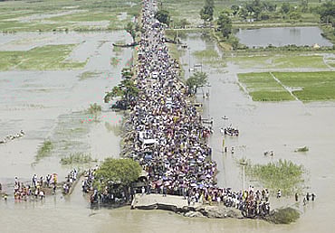 Chief minister Nitish Kumar in an air message to the people (on August 26) asked those in the flood-affected districts to move to safe places at the first opportunity. He warned that what they had witnessed might well be a prelude to a "full-scale deluge". Yet, despite the warnings, people in the most part have resisted the local administration's evacuation efforts. It is never easy to abandon land and property. Minister for disaster management Nitish Mishra, whose village in Supaul district itself is under five feet of water, says, "We have instances of people, particularly the middle class, who have had to be unwillingly evacuated to safe and higher places. People should understand this is not just an annual flood...this is a catastrophe."
