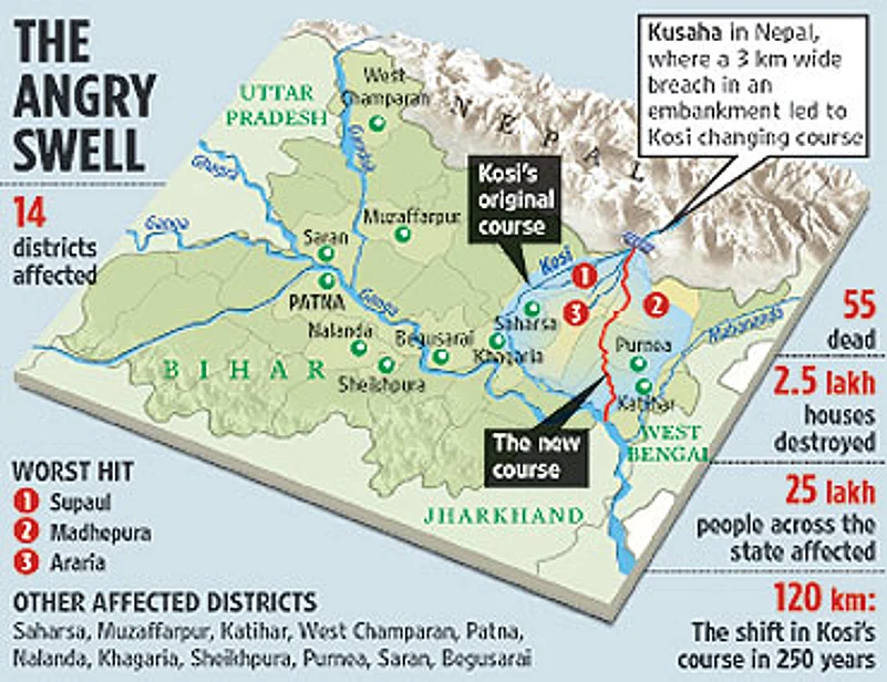 Could the calamity have been averted? The desilting of the river near the Kusaha barrage is an annual operation carried out by engineers from Bihar and Nepal ahead of the monsoon. But this year, work was delayed because of the politically charged situation there. When desilting finally got under way in the first week of August, it was already too late. Incidentally, the barrage built in 1950 was declared unsafe 20 years ago.
