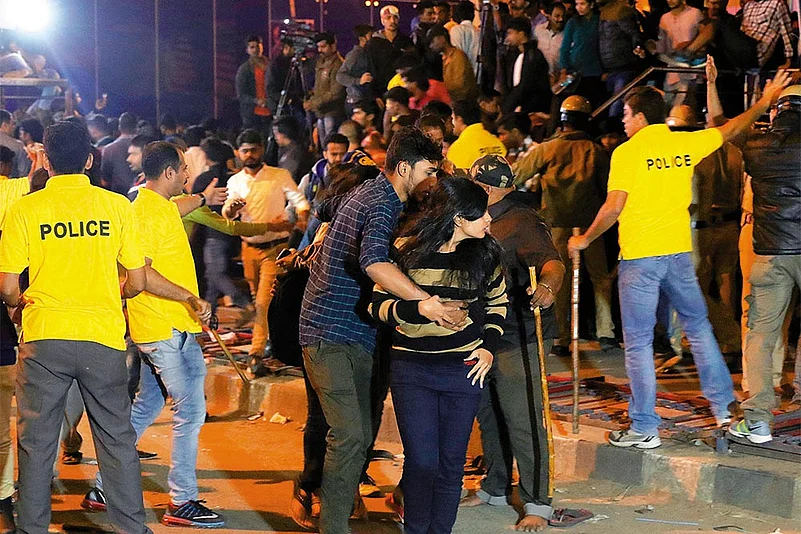 A week later, the police in Bangalore have registered several FIRs based on newspaper write-ups and social-media posts of women being molested, but say they have not found evidence on CCTV cameras that could be of help in investigations. (A horrific molestation incident caught on camera in another locality was probed and a group of local boys arrested.) Neither are people approaching them with information. “Women don’t complain because the first thing is they are not believed,” says Dona Fernandes of Vimochana, one of the women’s organisations that have been holding demonstrations and candlelight vigils in the past week. “Disbelief is the first thing that puts off women from complaining. Even now, they are being told molestation didn’t happen. If it didn’t, why were so many women on TV channels speaking live and telling us what happened?”