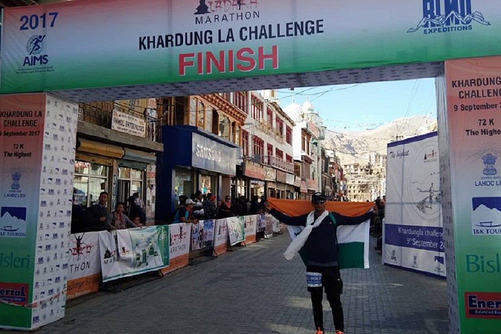 On September 9, after completing a 72km-long Khardung La marathon in Ladakh, he has proved his mettle by finishing the race within the stipulated time and winning a medal.