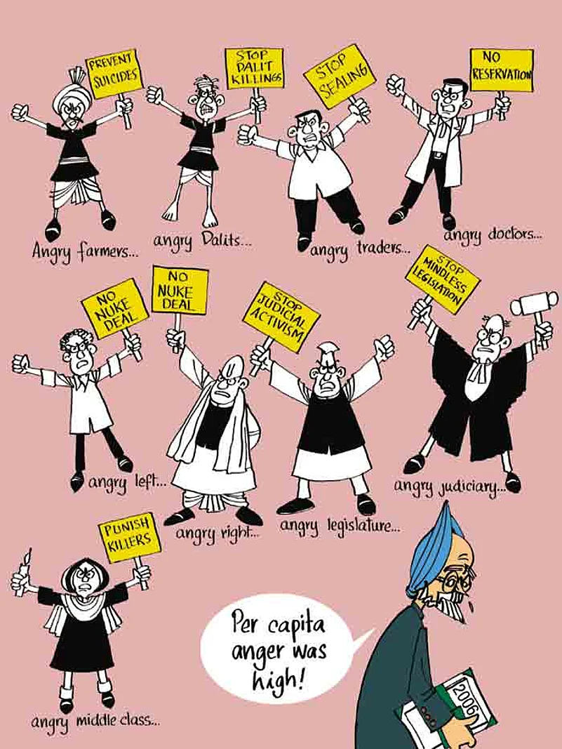 Angry farmers, angry Dalits, angry traders, angry doctors, angry left, angry right, angry legislature, angry judiciary, angry middle-class...