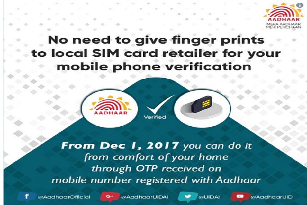 "From December 1, users can link the two using a one-time password on their phones. Telecom service providers will not need to verify biometric details to link mobile numbers with Aadhaar" Aadhaar India tweeted.
