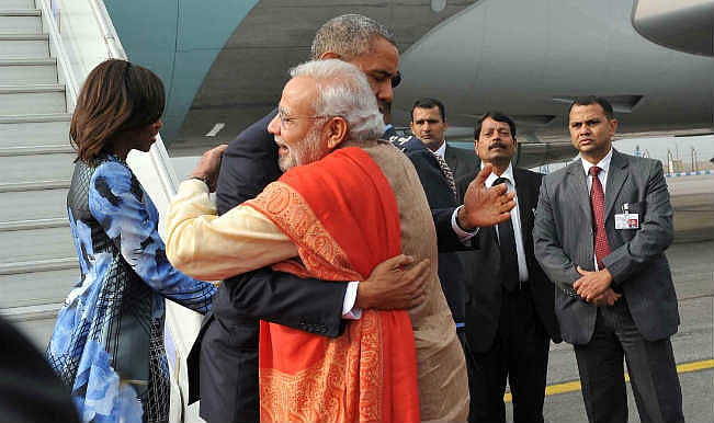 (PM Modi hugs former US president Barack Obama on his arrival in New Delhi)