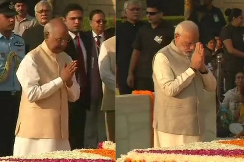 President Ram Nath Kovind and Prime Minister Narendra Modi paid floral tribute to Mahatma Gandhi at Rajghat today, on his 149th birth anniversary.