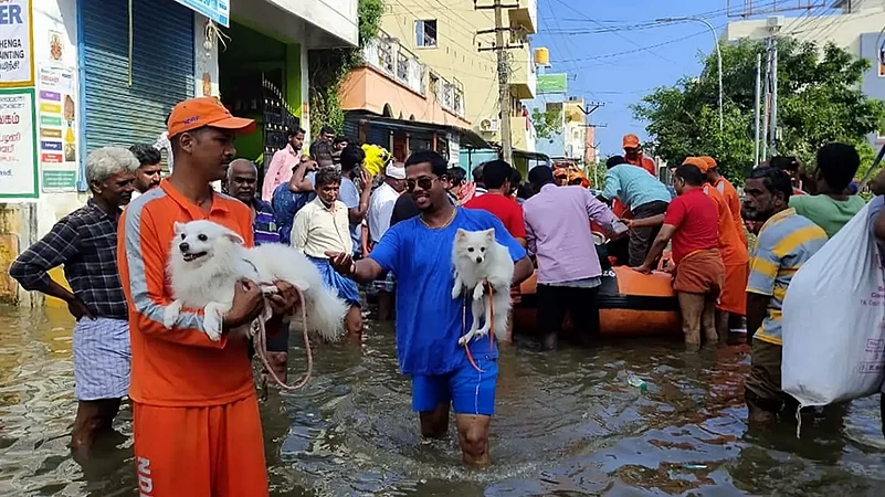 In the aftermath of Cyclone Michaung, emergency services, including NDRF, Indian Navy, and Coast Guard personnel, embark on swift rescue operations, evacuating stranded residents and distributing essential items in flooded colonies across Chennai, Tamil Nadu.