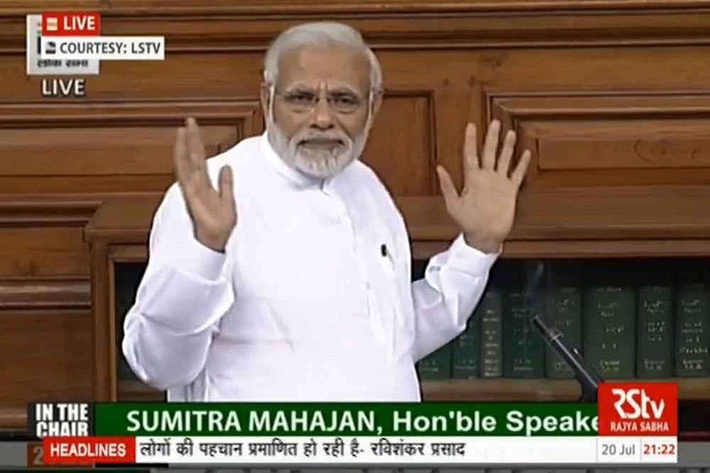 He also took a dig at Rahul Gandhi for asking him to stand up for a hug after walking across to his chair in the Lok Sabha, saying the Congress President appeared to be in a hurry to occupy his seat.