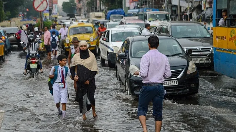 The Met department forecast heavy rain in Kolkata, North 24 Parganas, Howrah, Hooghly, Jhargram, West Midnapore, Birbhum, Murshidabad and Nadia districts of Gangetic West Bengal till Tuesday morning.