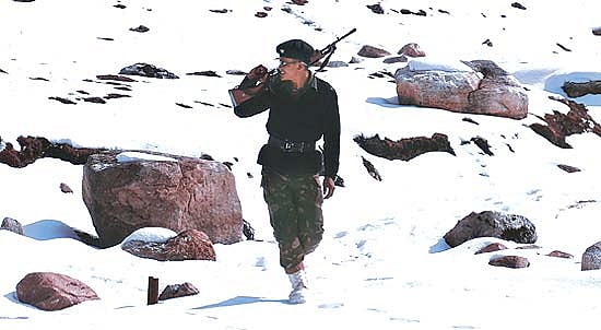 What are we defending?: An Indian army soldier patrols the snow-clad mountains of Tawang