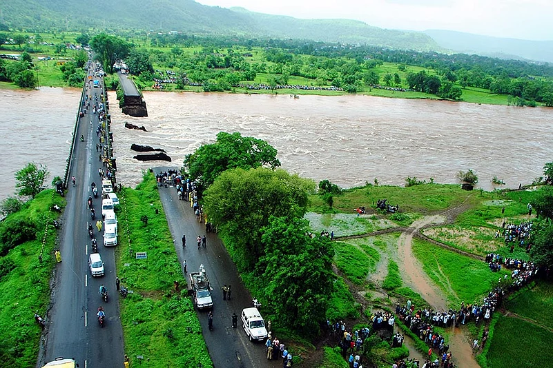 Remember, just two months ago, they were bringing water into Maharashtra by train. Now, the swollen Savitri river washes away that memory. Here, a bridge has collapsed at Mahad, 150 km south of Mumbai. And yes, some 3,000 km away, the Brahmaputra has displaced over a million people in Assam.