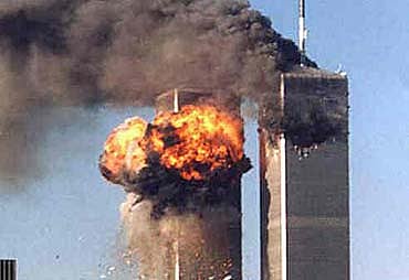 The door opened again and the aide furiously beckoned me to join them in the room next door, where a bunch of people, mostly wearing maroon robes, were staring at a blurry television screen which repeatedly kept playing the images of the two towers crumbling to the ground after being hit by the planes.