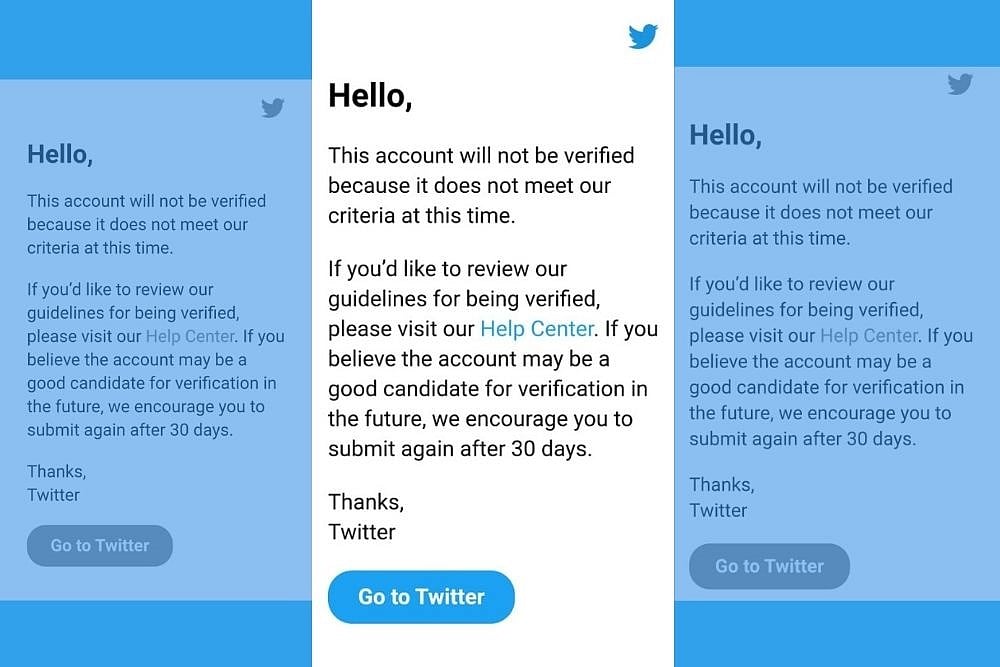 I woke up this morning to find a message from Twitter that my request has been turned down. According to them, I do not qualify under their criteria and hence, my request has been rejected. But if I so desire, I can re-apply 30 days later and request for my request to be reconsidered by Twitter.