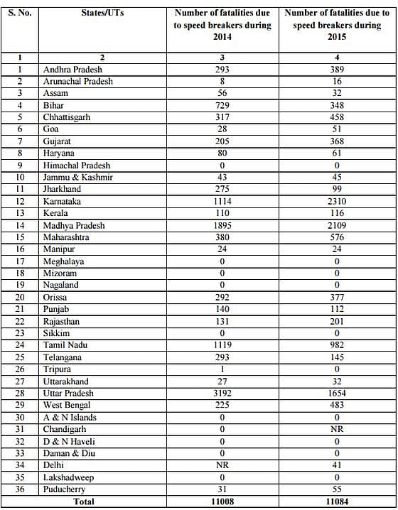 Statistics reveal that the number of deaths caused by speed-breakers rose marginally, from 11008 in 2014 to 11084 in 2015. However, the number of deaths caused by them is still alarming.
