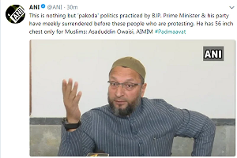 "This is nothing but 'pakoda' politics practiced by BJP. Prime Minister & his party have meekly surrendered before these people who are protesting. He has 56 inch chest only for Muslims," ANI quoted Owaisi as saying.