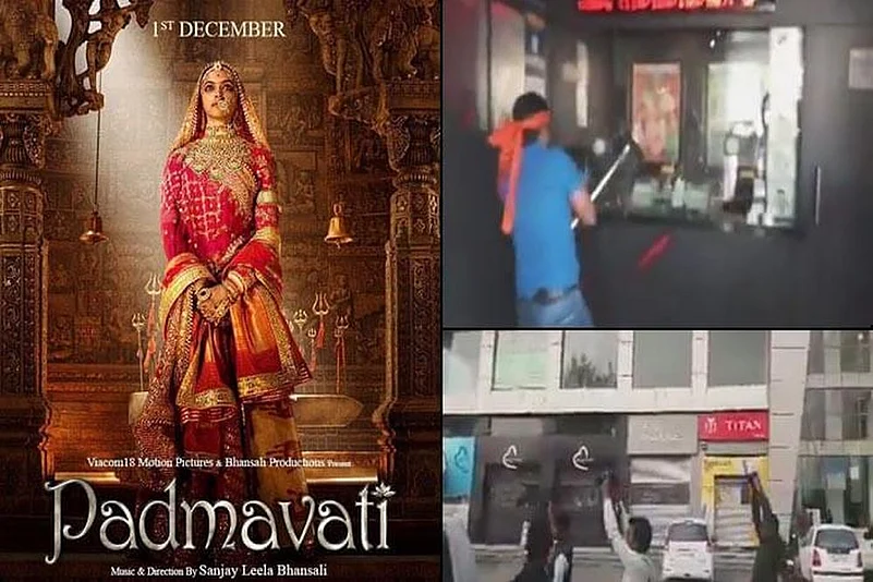 Nearly 50 activists of Shri Rajput Karni Sena on Tuesay rampaged through a cinema hall in Kota to protest the screening a teaser of Sanjay Leela Bhansali's next movie 'Padmavati', which the group say distorts historical facts.