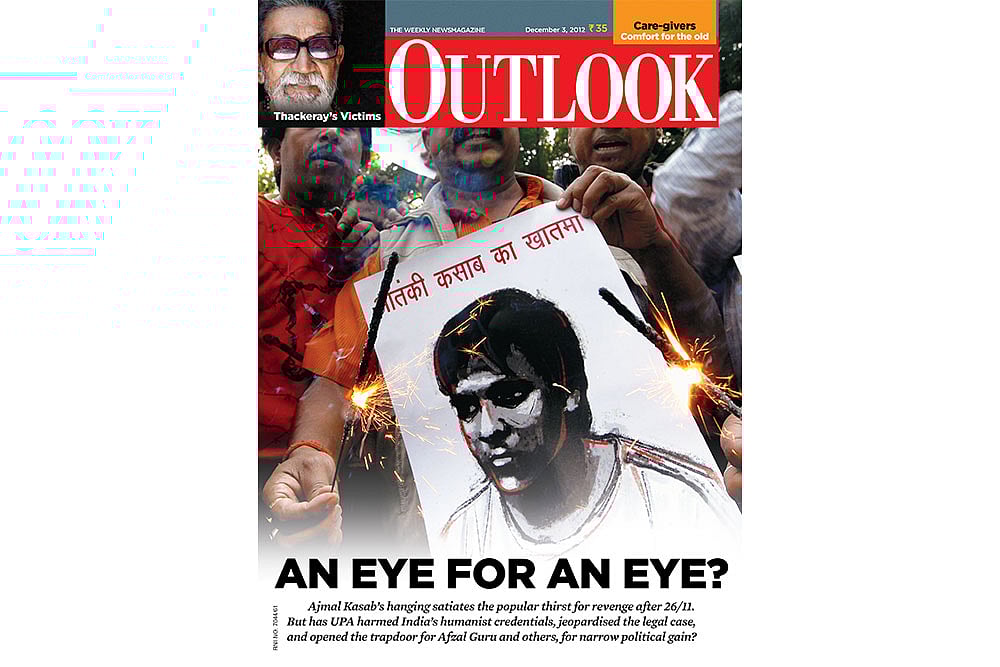 The Kasab Closure: Ajmal Kasab went from being behind bars to the hangman’s noose with surprising alacrity. In its December 3, 2012, issue, Outlook published a story on the sudden death sentence and the implications for Mumbai and India. The cover story also asked a tough question—Has the UPA harmed India’s humanist credentials, jeopardised the legal case and opened the trapdoor for Afzal Guru and others, for narrow political gain?